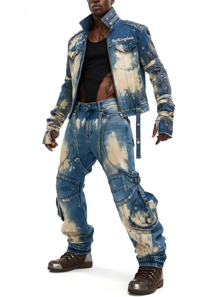 Start with wash technology selection: laser distressing for repeatable abrasion maps, ozone for fade effects with reduced chemical load, and enzyme-based processes to replace harsher bleaching where possible. Sky Kingdom describes a zero-chemical ambition supported by laser and ozone washing, waterless dyeing, and natural enzymes, framed as a safer process for workers and wearers.