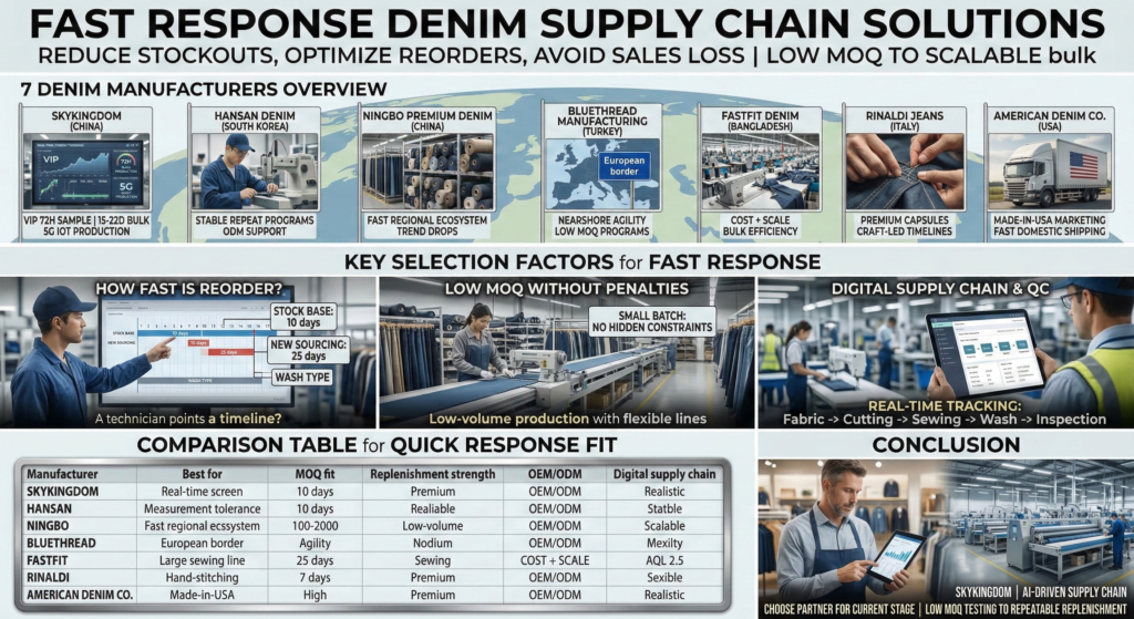 This how-to checklist helps you de-risk sampling by asking six factory questions in the right order. You will confirm whether you need OEM, ODM, or a hybrid setup, lock low MOQ and small batch rules, test fast response timelines, validate wash consistency, check Smart Manufacturing and Digital Supply Chain visibility, and verify Sustainable Denim claims with proof.