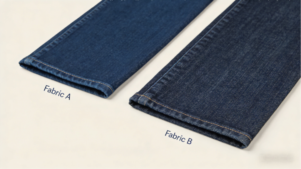 A brand developed a core blue straight-leg jean. First samples hit weight/color — but lacked the “vintage-meets-everyday” vibe. The problem? Wrong fabric path: